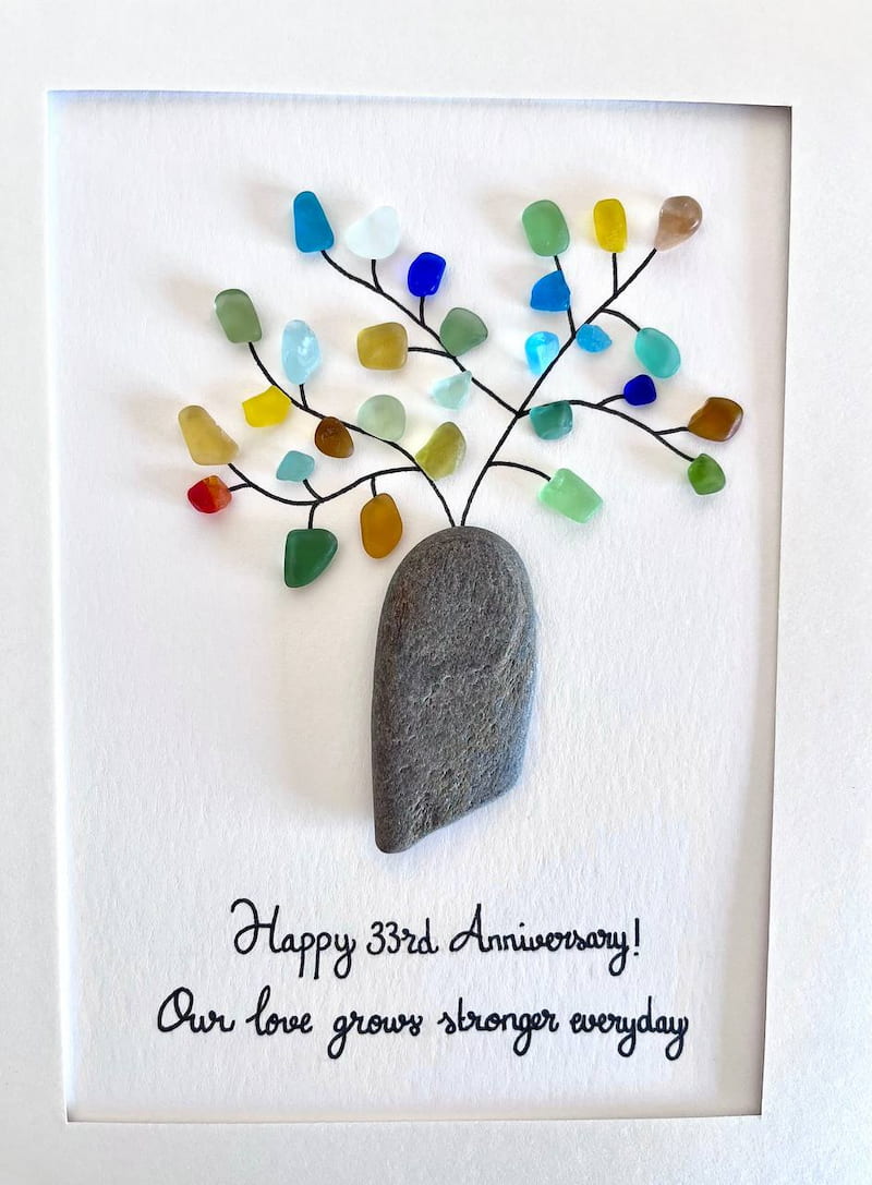Christmas Gift - Pottery Vase With Sea Glass Plant - Personalized